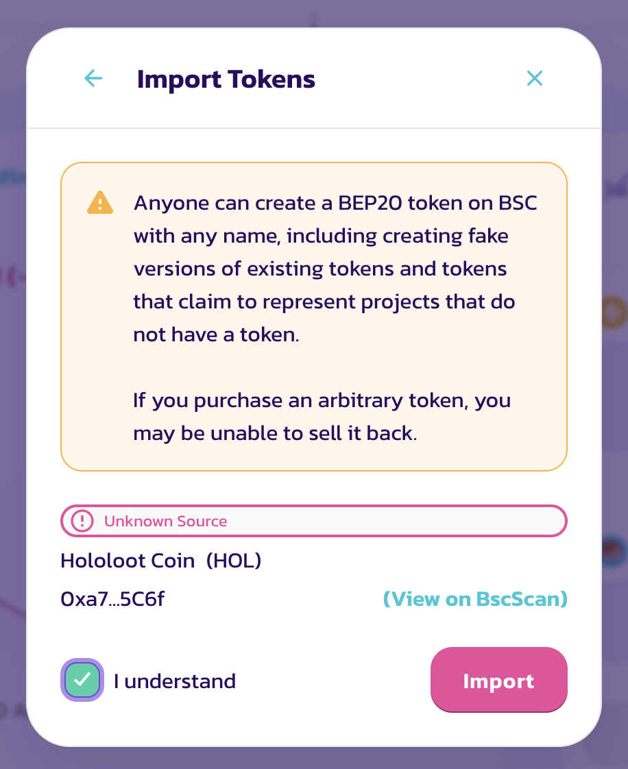 This is where the swapping happens. Youâll have to manually add the Hololoot pair using the contract address. (We canât say this enough: always double check it!)