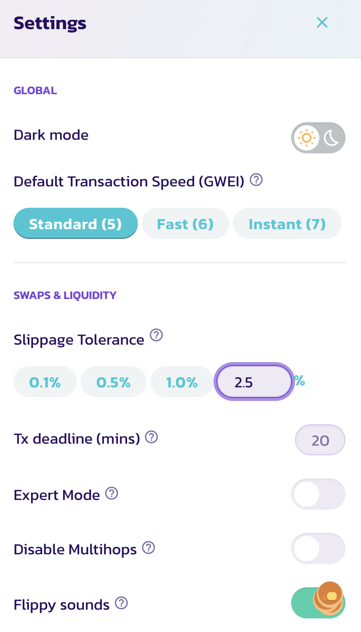 Once the tokens are approved, there is one small change you need to make to the settings. As the token is new and liquidity is still relatively low, slippage is a reality. These needs to be manually adjusted, although as liquidity is added and as the price stabilizes, slippage should decrease.