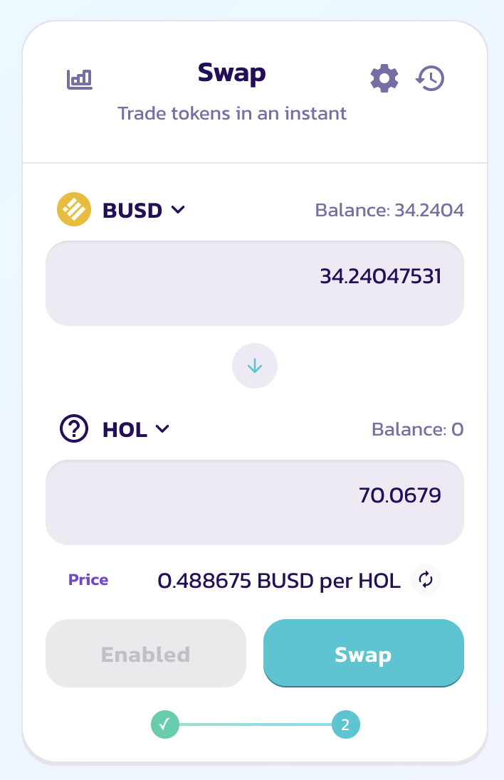 This is probably the most obvious step, but again one that new users might need help with. Decentralized exchanges require funds in a wallet like MetaMask, and in this case you need BUSD to swap for HOL. There are plenty of tutorials on how to do this online so we wonât cover them here, and which wallet you use is ultimately up to you.