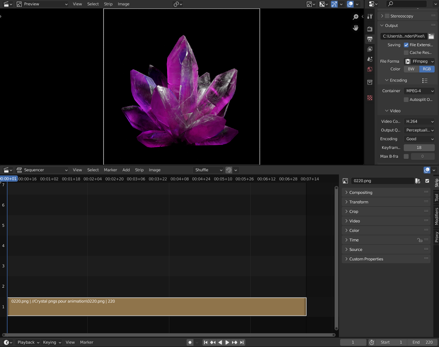 Once he’s happy, he duplicates the crystals and assembles them into the cluster we see in the final render.