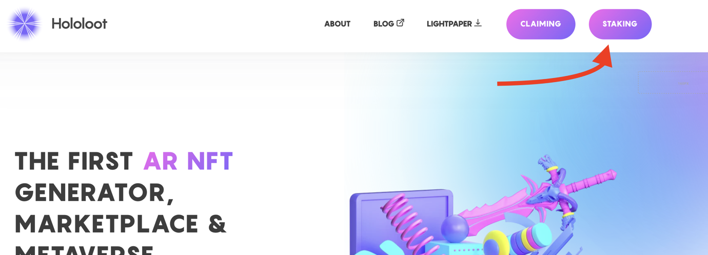 First, head to our staking page here: staking.hololoot.io. Or you can navigate there from the Hololoot homepage