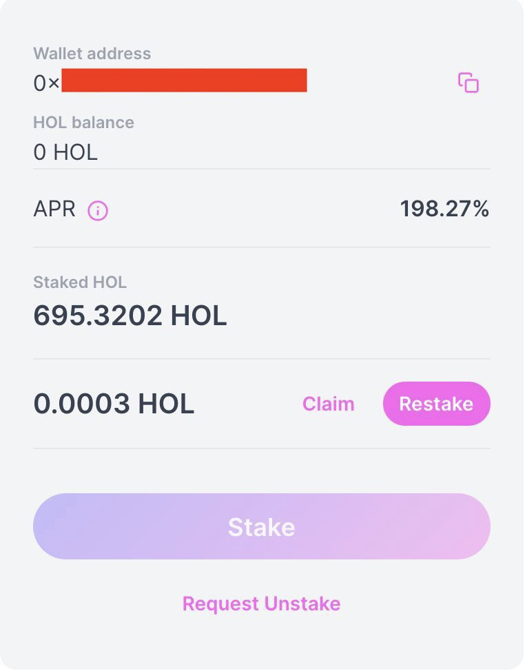 If you decide to unstake, just hit ‘Request Unstake’, approve the transaction, and you’ll get your $HOL plus any unclaimed rewards. Remember to check the rules though: if you unstake early you may incur a penalty.
